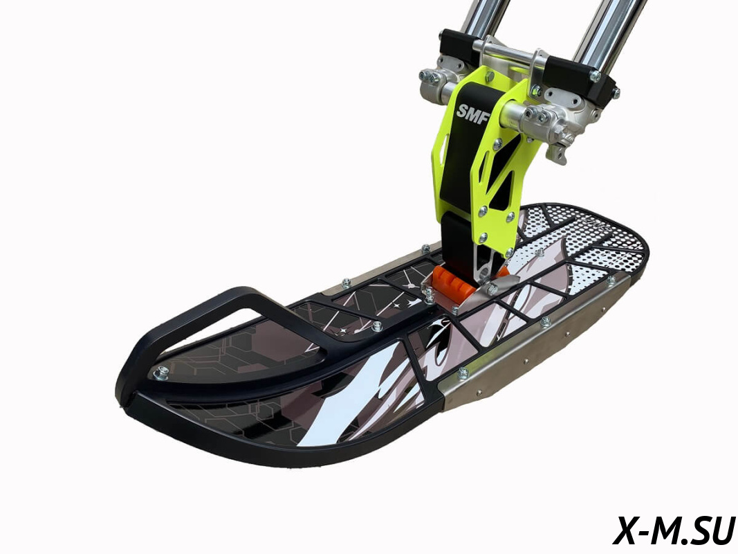 Тормоз интегрирован в лонжерон, полностью изолирован от внешней среды, отсутствует контакт со снегом. Дисковый, гидравлический, двухпоршневой суппорт. Тормозная гидравлическая магистраль 1600мм, армированный тефлон. В комплекте поставляется полностью прокачанная тормозная система с установленной тормозной машинкой.